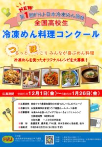 全国高等学校家庭クラブ連盟様主催、私たち(一社)日本冷凍めん協会の協賛にて、「第1回 FHJ―日本冷凍めん協会 全国高校生冷凍めん料理コンクール」が開催されました。