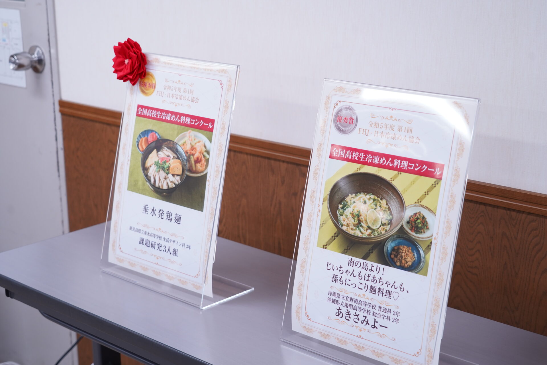 私たち(一社)日本冷凍めん協会も審査員として参加いたしました。高校生の作品とは思えないほど、繊細で工夫されたレシピの数々に審査員一同驚きでした。