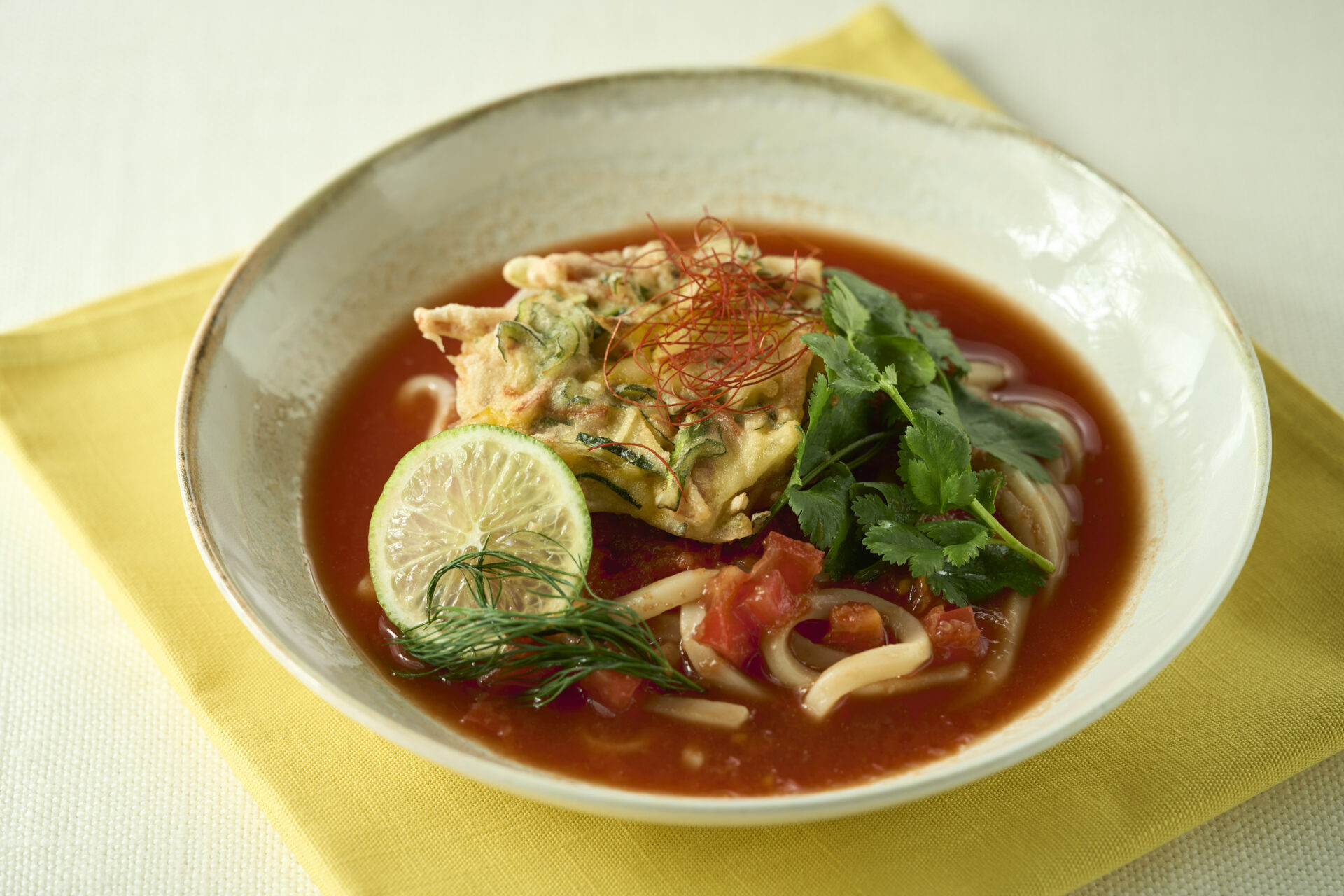 「ラグマン風! サクサクかき揚げのトマトうどん」