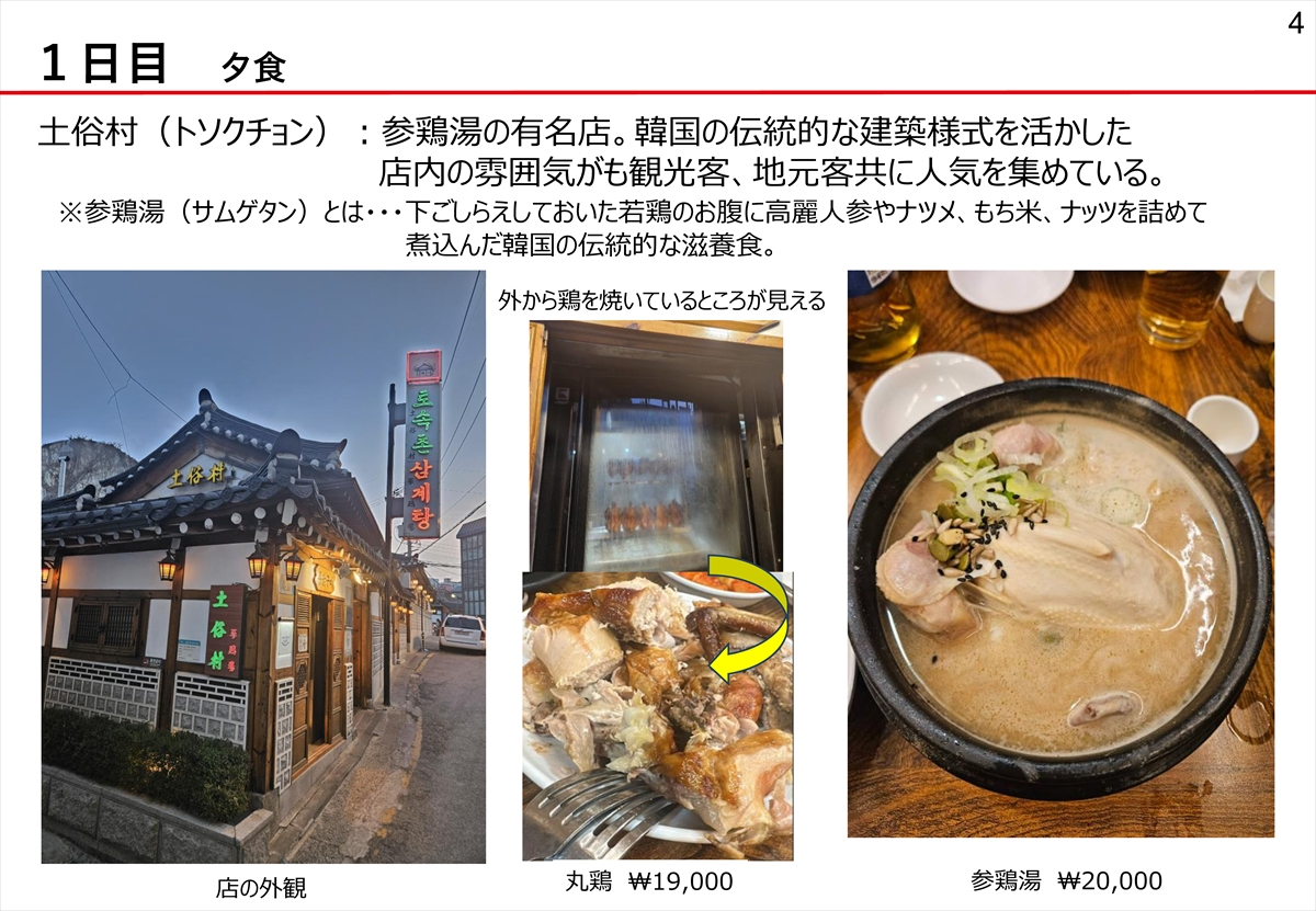 1日目 明洞周辺視察、夕食はサムゲタンの有名店土俗村