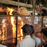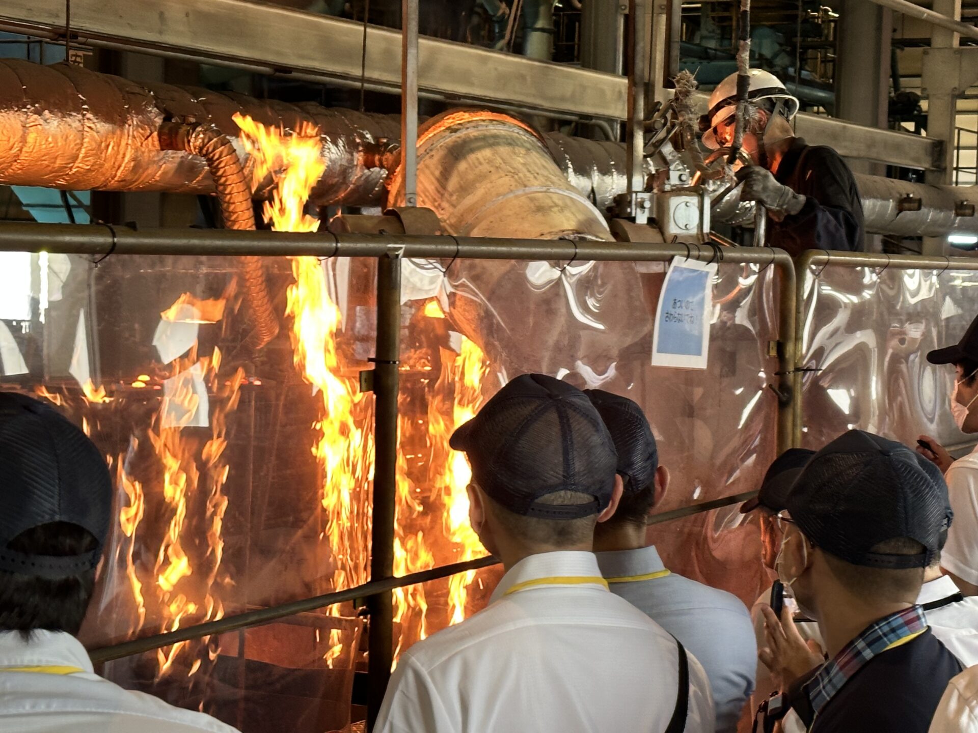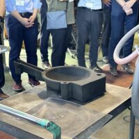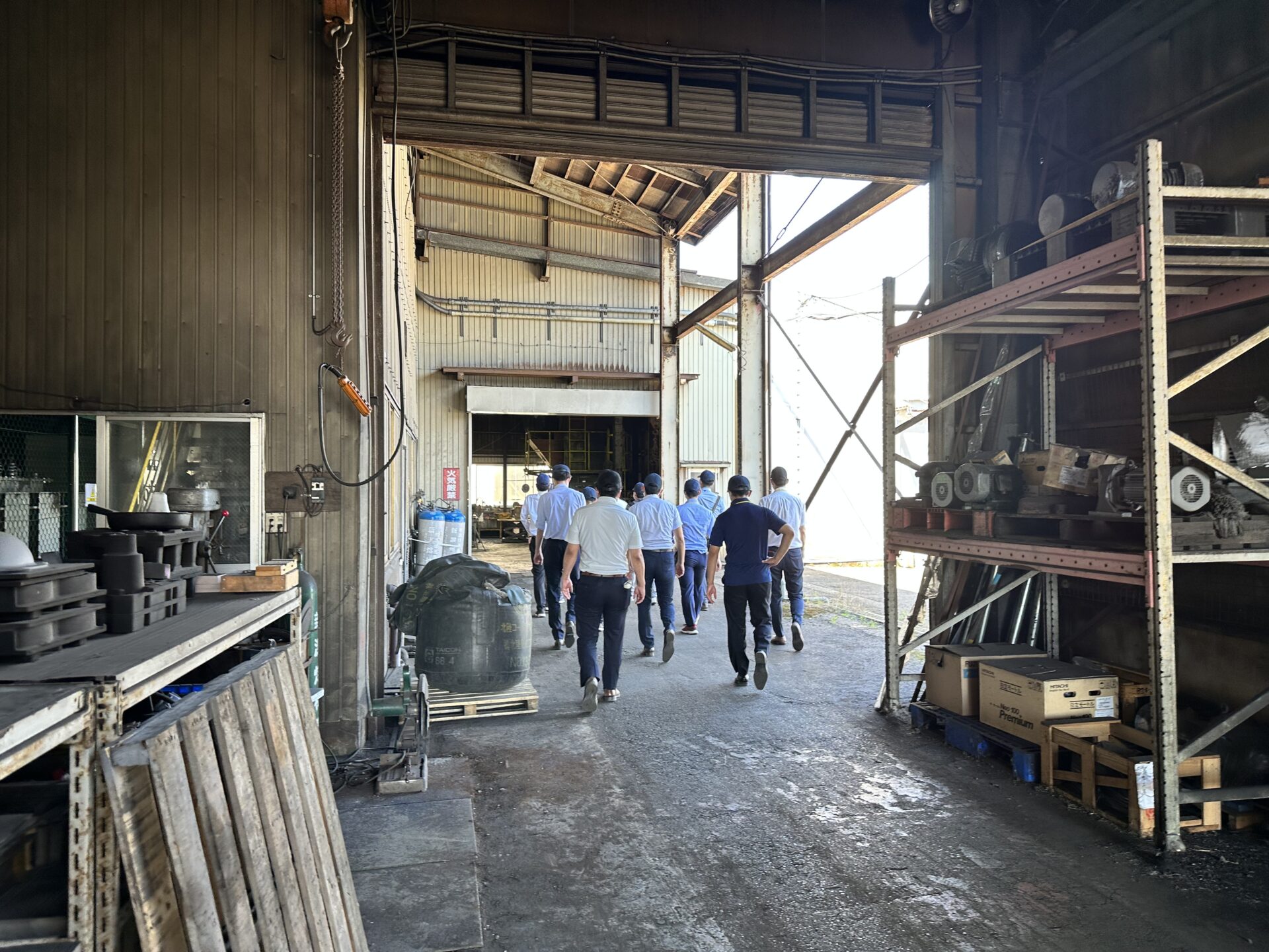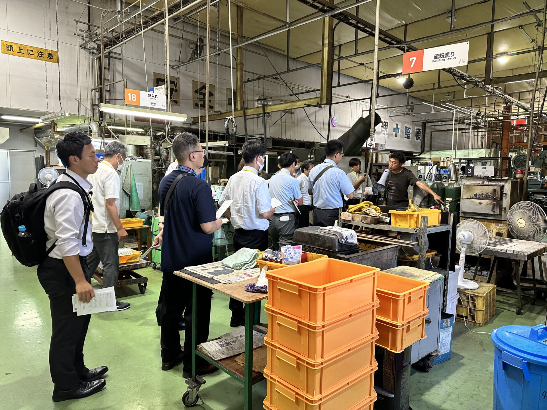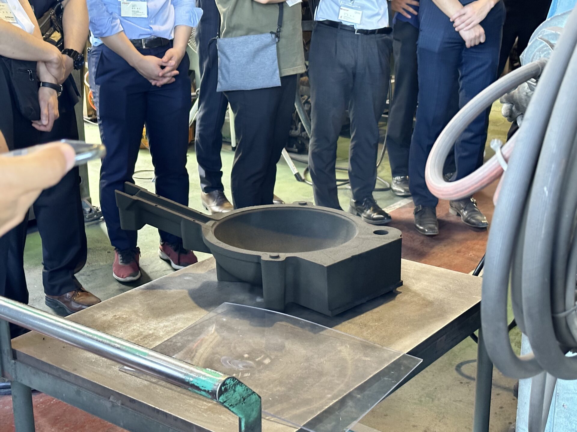 猛暑日に火を使う熱い鋳物工場の見学となりましたが、鋳物ならではの大迫力の工場見学と、「完成するまであきらめない」と強く心に誓い、製品づくりに邁進した、モノづくりの熱き魂を学ぶことができました。