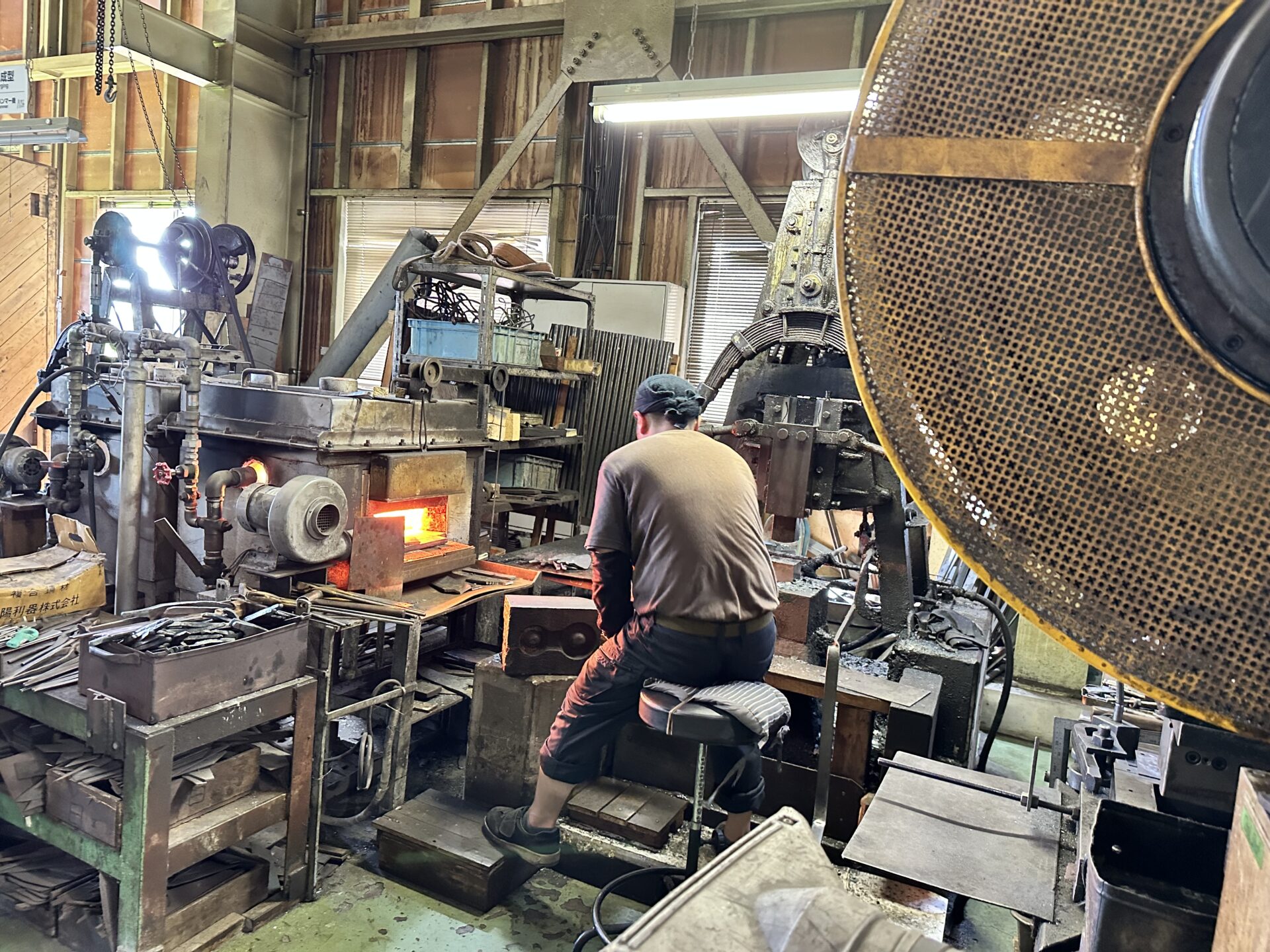 三条市は鍛冶の町として栄えてきました。最長2年待ちのパン切り庖丁を含む基本の3本・次の1本シリーズが人気。昔ながらの手仕事で作る庖丁工房タダフサのモノづくりの現場は迫力満点でした。