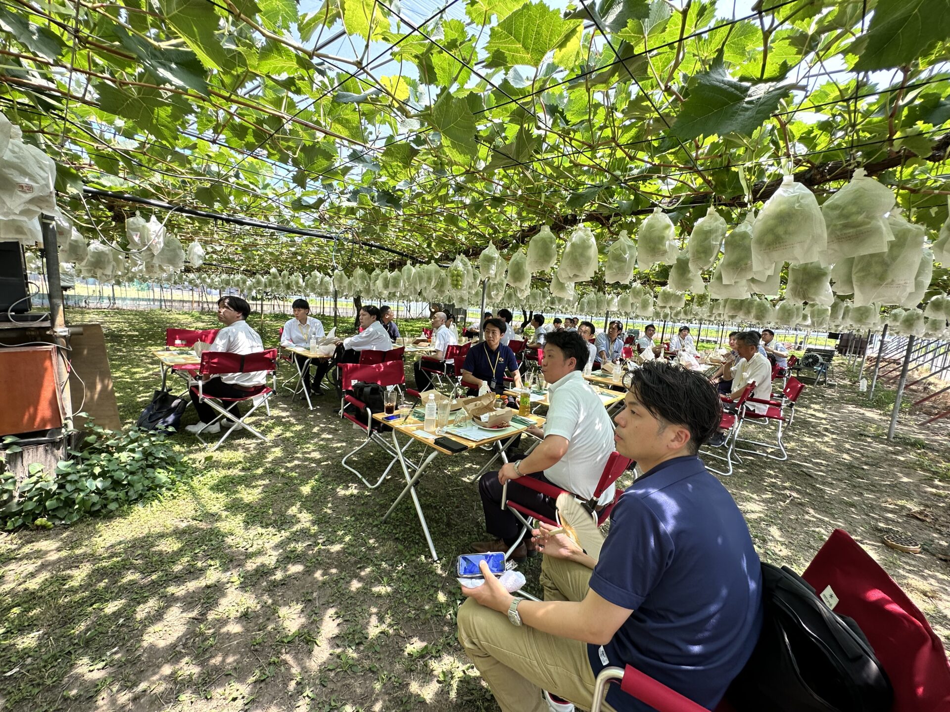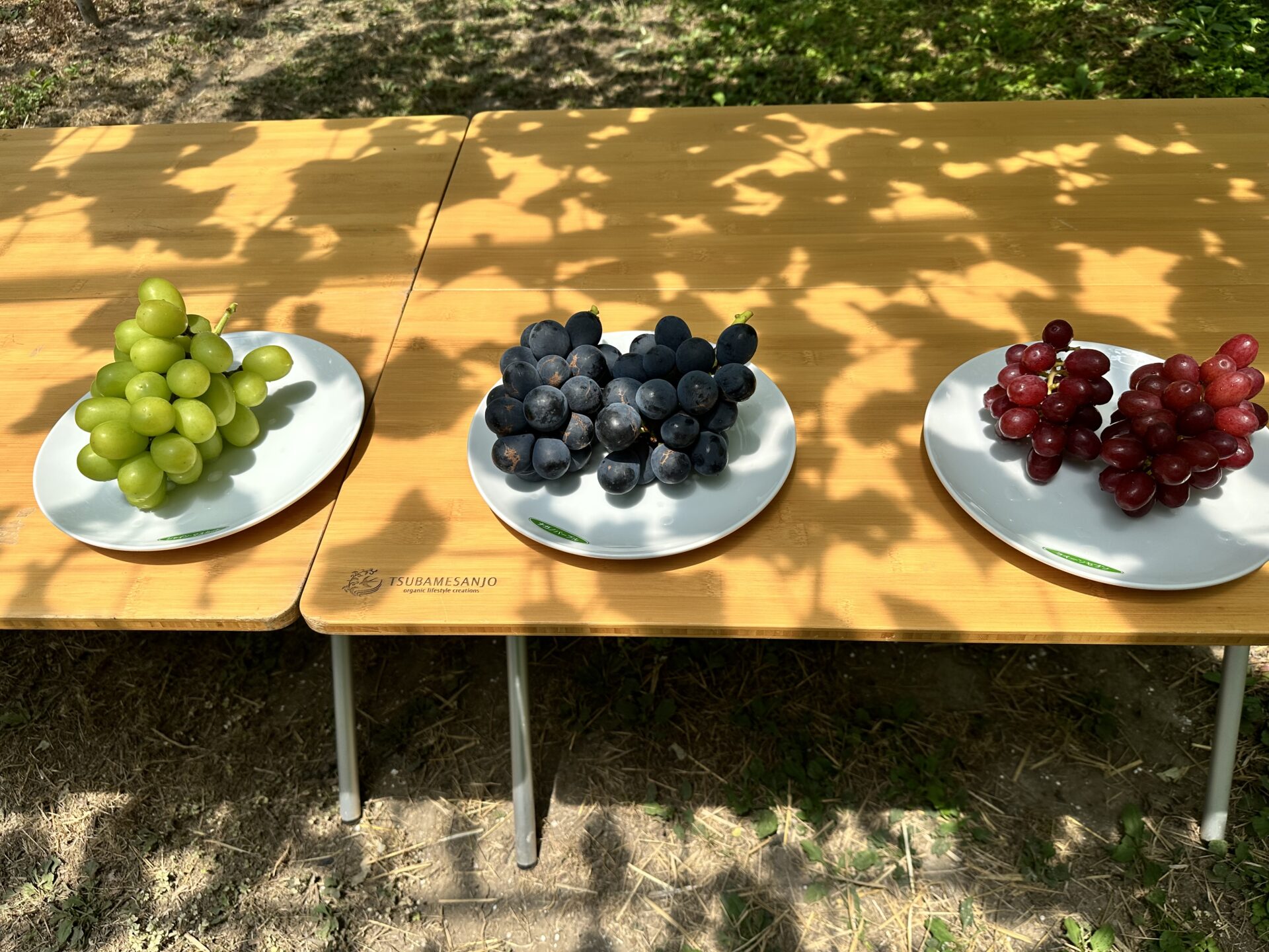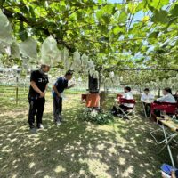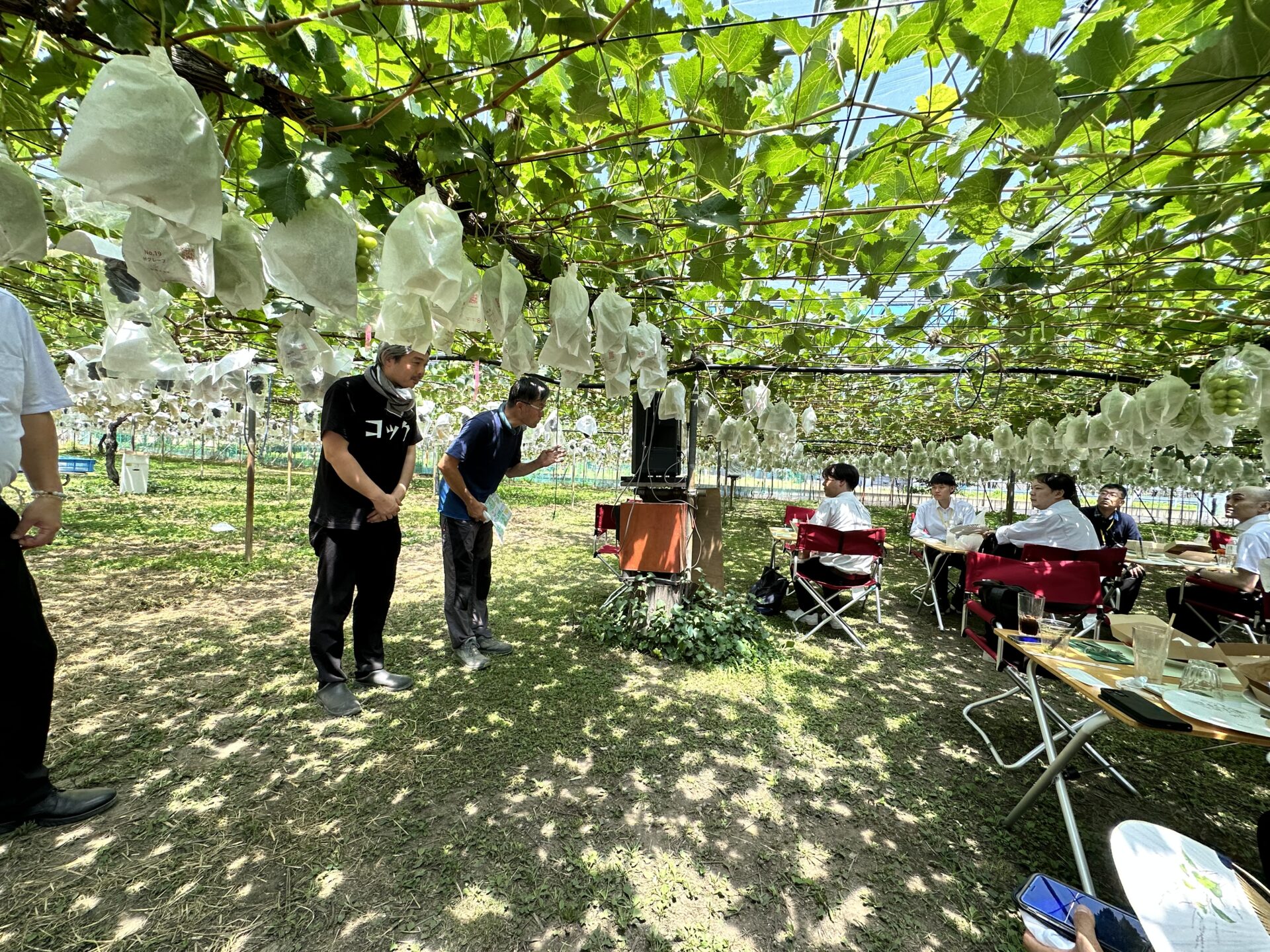 この渡辺果樹園では、燕三条の農業ブランディングの一環として2011年より取り組まれている「燕三条畑の朝カフェ」のスタイルで昼食とシャインマスカットの袋掛け作業を体験。