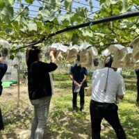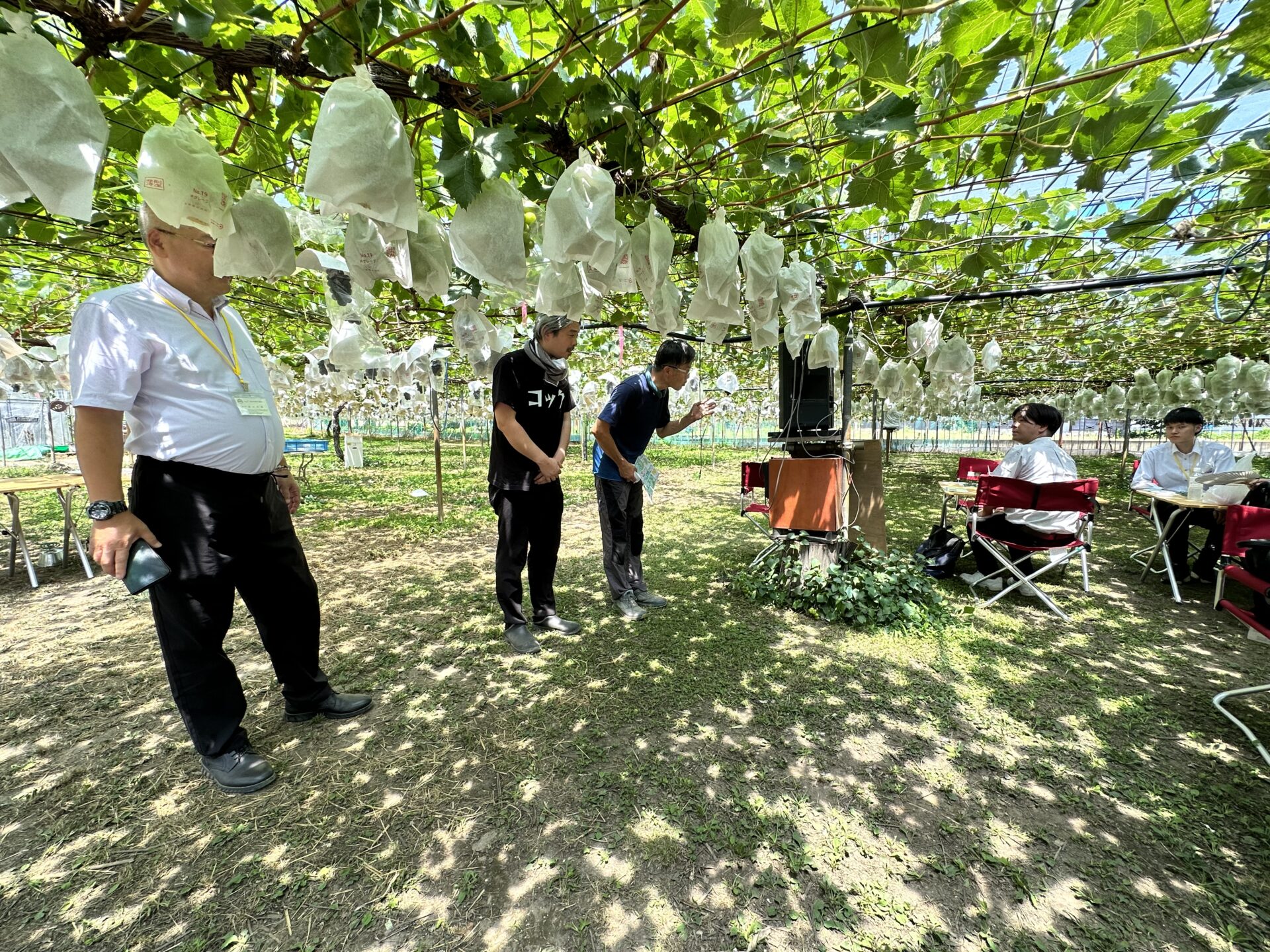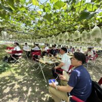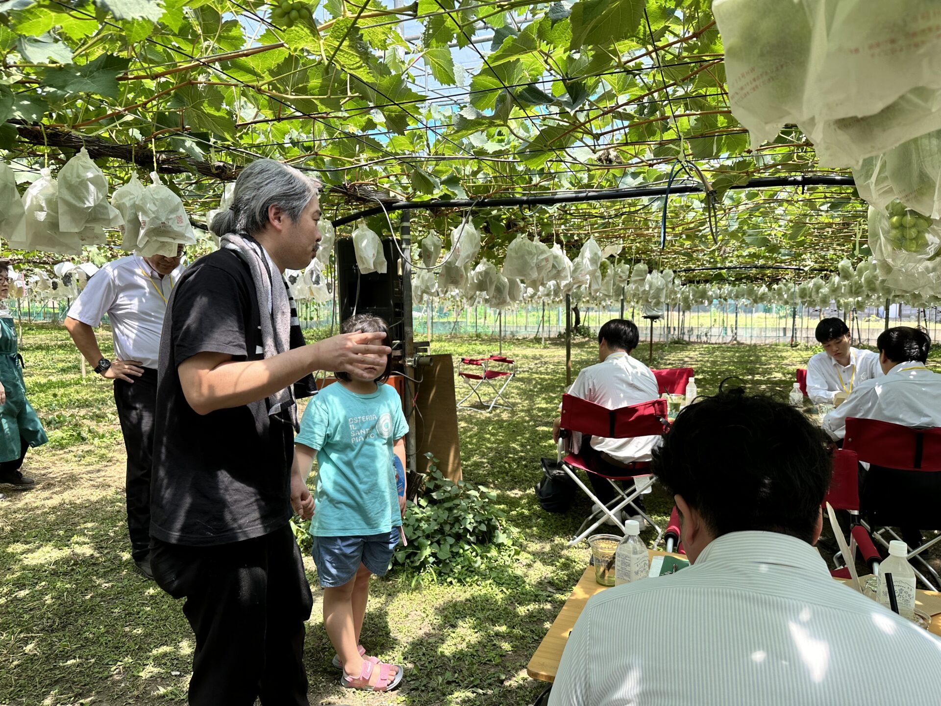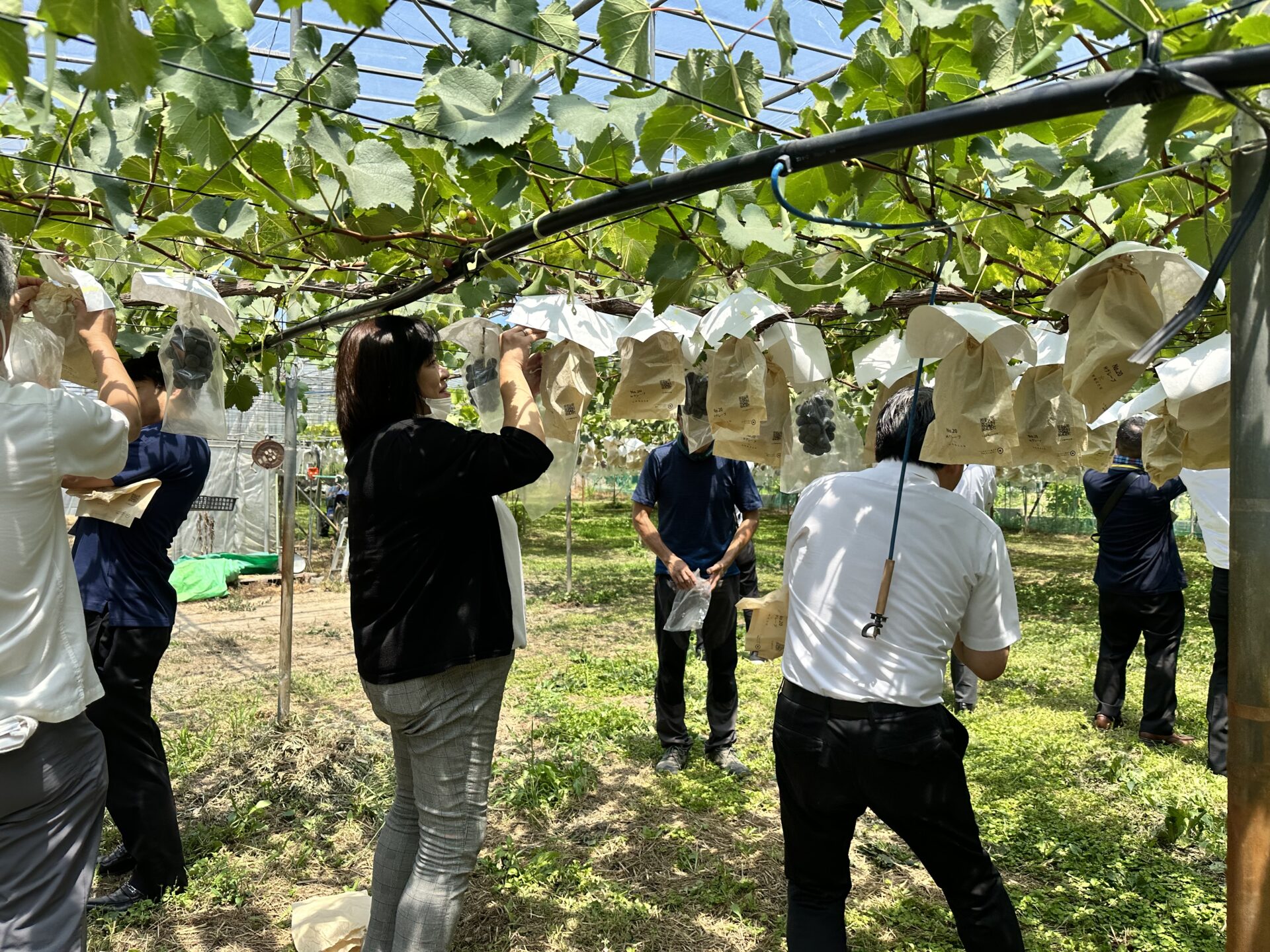 この渡辺果樹園では、燕三条の農業ブランディングの一環として2011年より取り組まれている「燕三条畑の朝カフェ」のスタイルで昼食とシャインマスカットの袋掛け作業を体験。