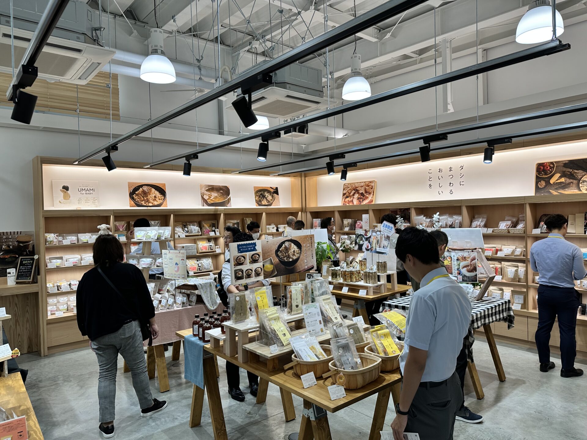 元々は業務用をメインとしたダシやつゆを、一般消費者向けにリブランディングし販売している店舗では、皆さん興味深く商品を手に取っていました。