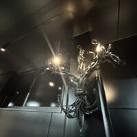 工場内には、SUWADAの人気商品である「ニッパー型爪切り」の破材で製作したブランキングアートや照明器具も飾られており、とても工場とは思えない洗練された空間となっていました。