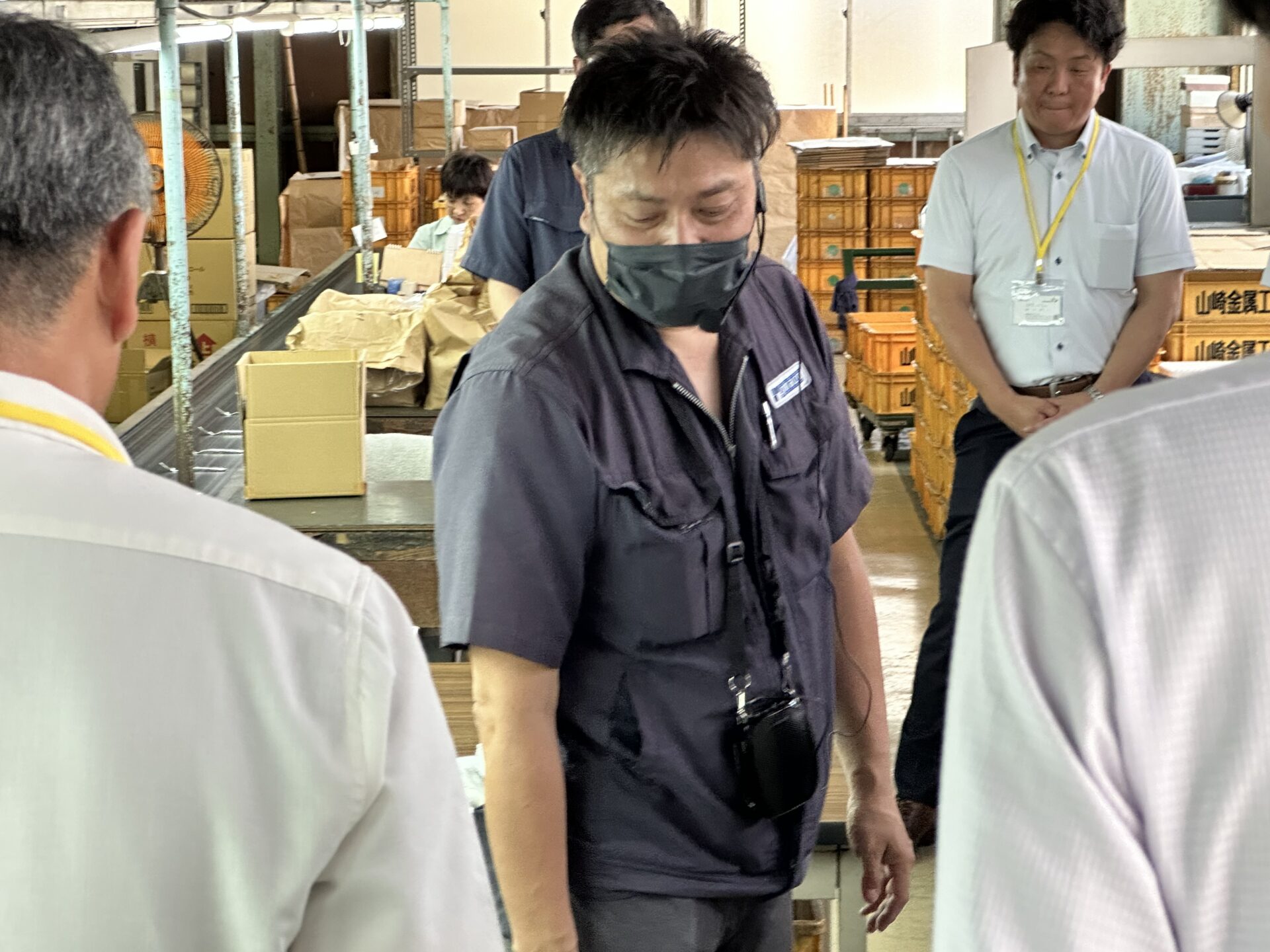 猛暑が続く中、暑い工場の見学となりましたが、食にかかわるモノづくりやブランド構築など、参考となるところがあったのではないかと感じます。