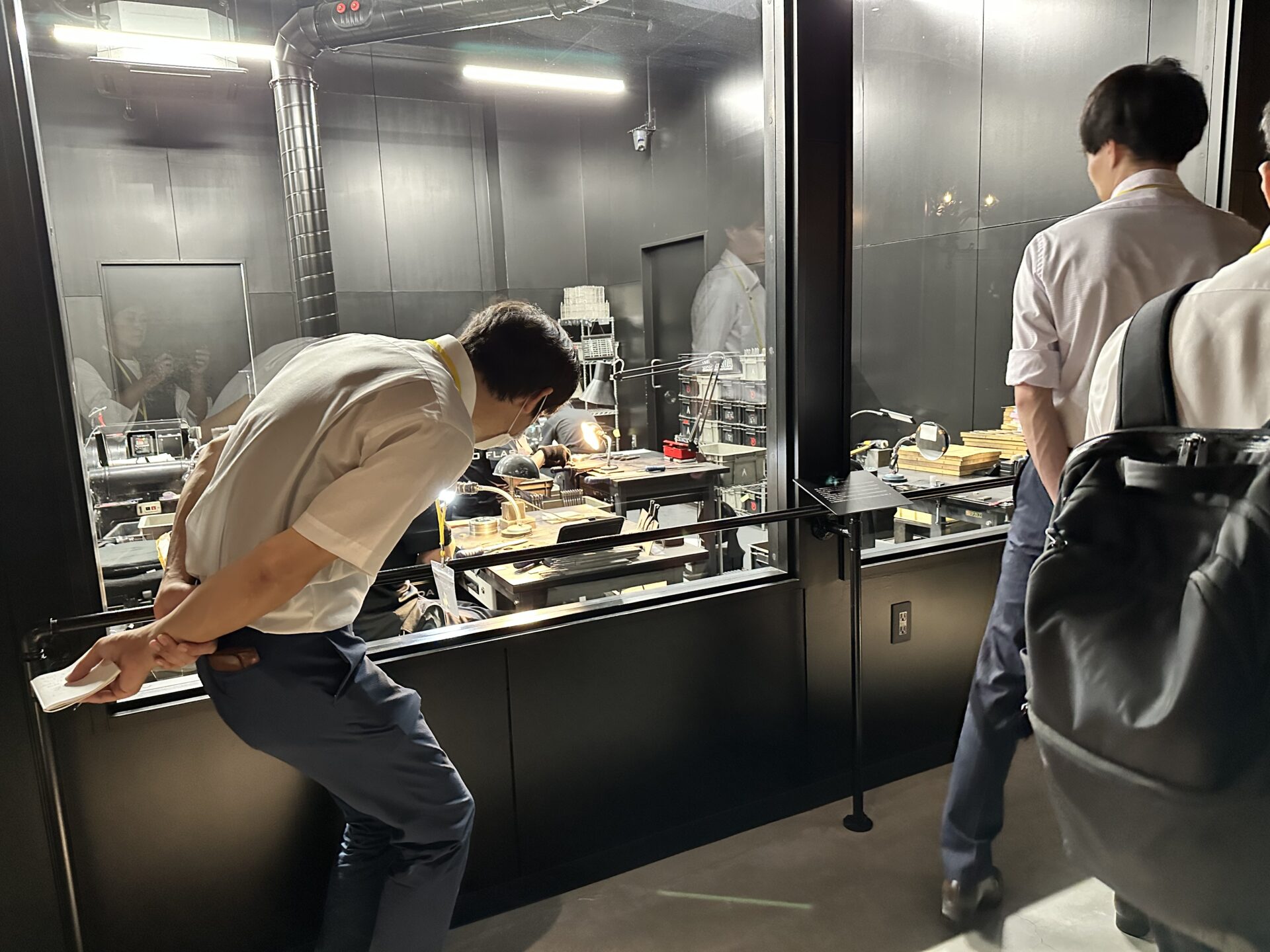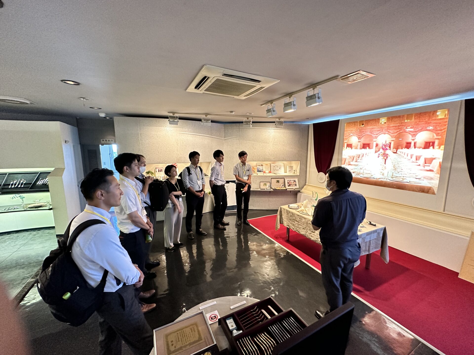 ノーベル賞晩餐会のカトラリーをつくる山崎金属工業のものづくりを間近で体感。「ホンモノ」を生み出す努力と研鑽された匠の技を、工場内やギャラリーを案内いただき学ぶことができました。そして、山崎金属工業ではカトラリーの価値の伝え方にもひと工夫がされており、参加者の皆さんが唸り声をあげていました。