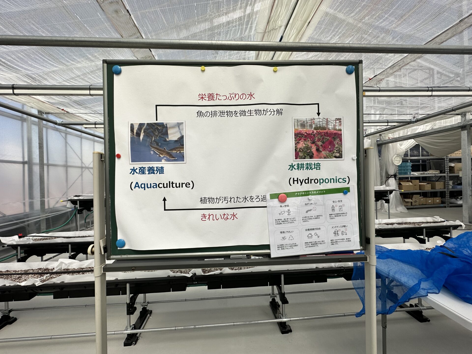 ダシやめんつゆを製造する(株)フタバが運営するON THE UMAMIと併設のカフェumamito cafe。カフェの隣にはアクアポニックスというお魚を活かした循環型の農法で、無農薬・オーガニックの野菜を栽培している施設があり、見学させていただきました。